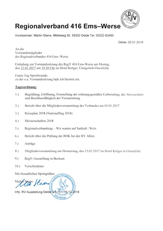 13. Januar 2018 Versammlungen RV Frühjahrsversammung Reg.-Verband Mitgliederversammlung tagPlaceholderTags: News